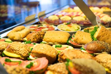 Wir liefern für Ihre Feier Platten mit dekorativ belegten Schnittchen und Brötchen sowie leckeren Kuchenstückchen.